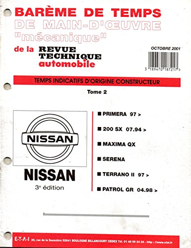 BAREME DE TEMPS DE MAIN-D'OEUVRE MECANIQUE DE LA REVUE TECHNIQUE AUTOMOBILE NISSAN 3 EME EDITION TOME 2 / PRIMERA / 200 SX / MAXIMA QX / SERENA / TERRANO II / PATROL GR PDF Download