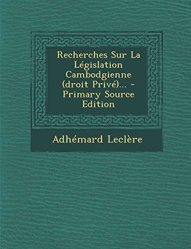 Free Recherches Sur La Legislation Cambodgienne (Droit Prive)... - Primary Source Edition PDF Download